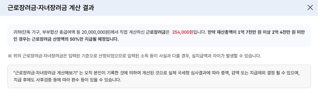- 근로장려금 지급액 계산