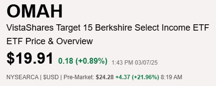 OMAH ETF는 미국 나스닥 시장에 상장된 ETF 입니다. 워렌버핏 ETF라고 불리기도 하는데요. 우리나라 시간으로 3월 5일에 상장된 ETF입니다. 이 ETF는 워렌버핏 포트 상위 20개 종목을 추종하며 배당률 15%를 목표로 하는 월배당 ETF 입니다. 좀 더 자세히 알아보겠습니다.