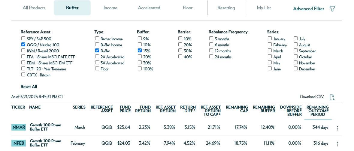 티커인 NMAR에서 알 수 있듯이 MAR는 3월을 의미합니다. 우리나라도 3월 25일 아시아 최초로 출시되는 버퍼 ETF의 이름에도 3월이 붙어있습니다. 즉, 버퍼 ETF는 출시일로부터 만기가 1년짜리인 ETF입니다.