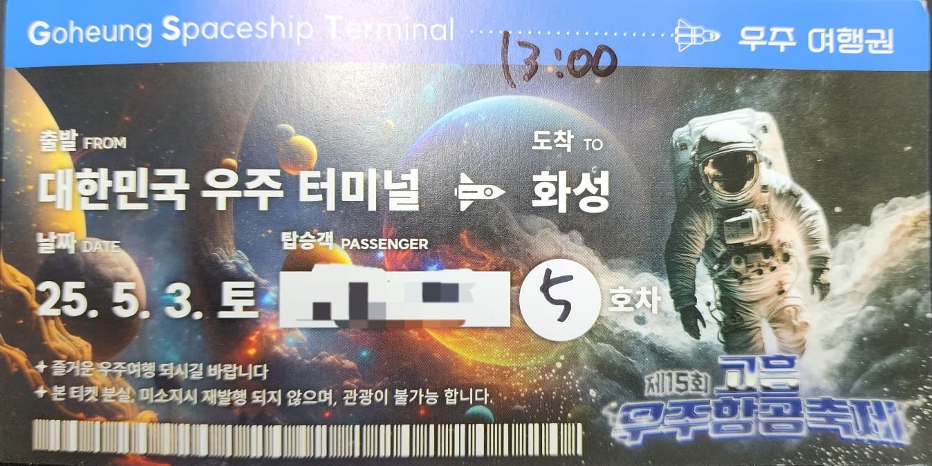 아래 그림과 같이 고흥 우주항공 축제 공식 홈페이지에 접속하시면 사전 온라인 접수 배네가 있습니다. 보통 축제기간 한달 전부터 접수가 가능합니다. 올해(2025년)의 경우, 축제 기간은 5월 3일부터 5월 6일까지 였는데, 사전 온라인 접수기간은 4월 1일부터 4월 27일 까지 입니다. 안내하시는 분의 말씀에 의하면 온라인 접수의 경우 하루 이틀 만에 마감되었다고 합니다.