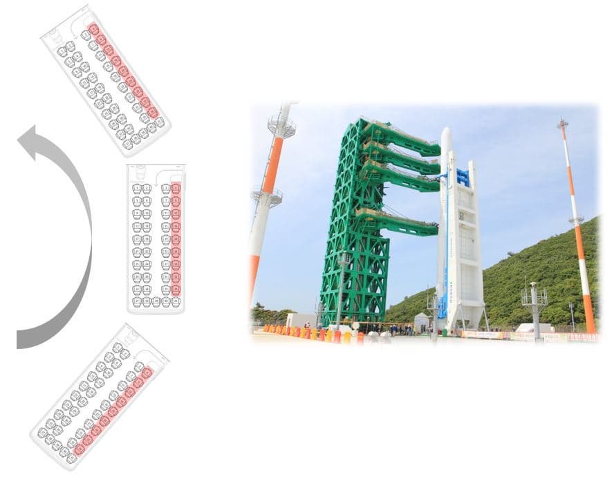 발사대로 이동한 차량은 차량에서 하차해서 관람할 수 없기 때문에 차량 안에서 자리 선정이 중요한데요. 아래 그림처럼 차량 내부 기준으로 조수석 창가쪽 라인에 앉으시는 것을 추천드립니다. 차량에서 내리지 않기 때문에 이동 차량들은 병풍처럼 발사대를 향해서 잠깐 정차를 하는데요. 이때도 차량 3대중에 가운대 차량이 가장 잘 보입니다.